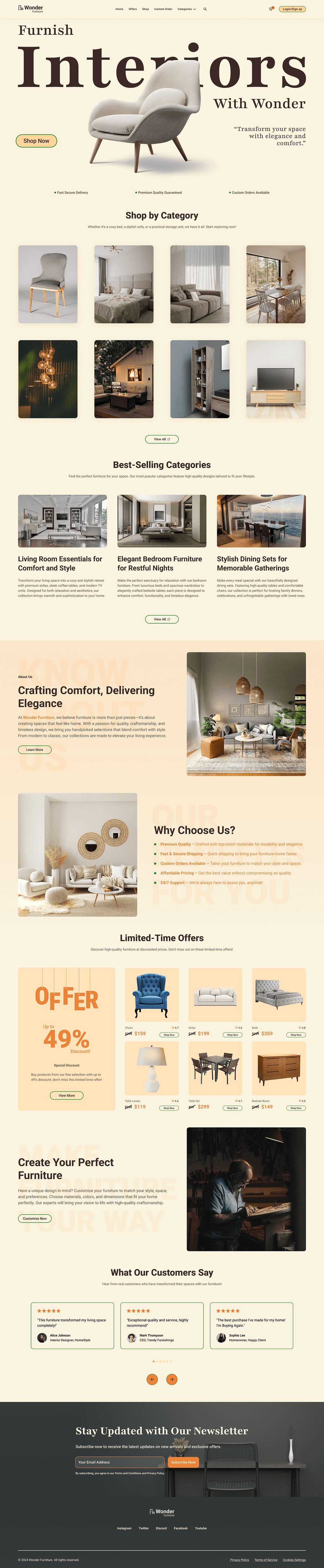 Excited to share my latest UI design – a modern and user-friendly homepage for a furniture eCommerce store, named "Wonder Furniture". This design focuses on a clean layout, easy navigation, and a seamless shopping experience. From showcasing the latest arrivals to custom order options, every section is crafted for both aesthetics and functionality. Let me know your thoughts! Feedback is always appreciated.